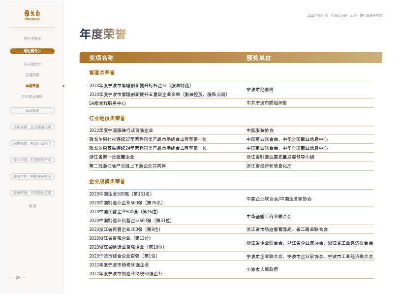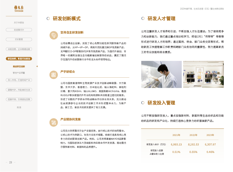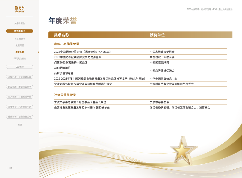雅戈尔2023年度环境、社会及治理(ESG)暨社会责任报告