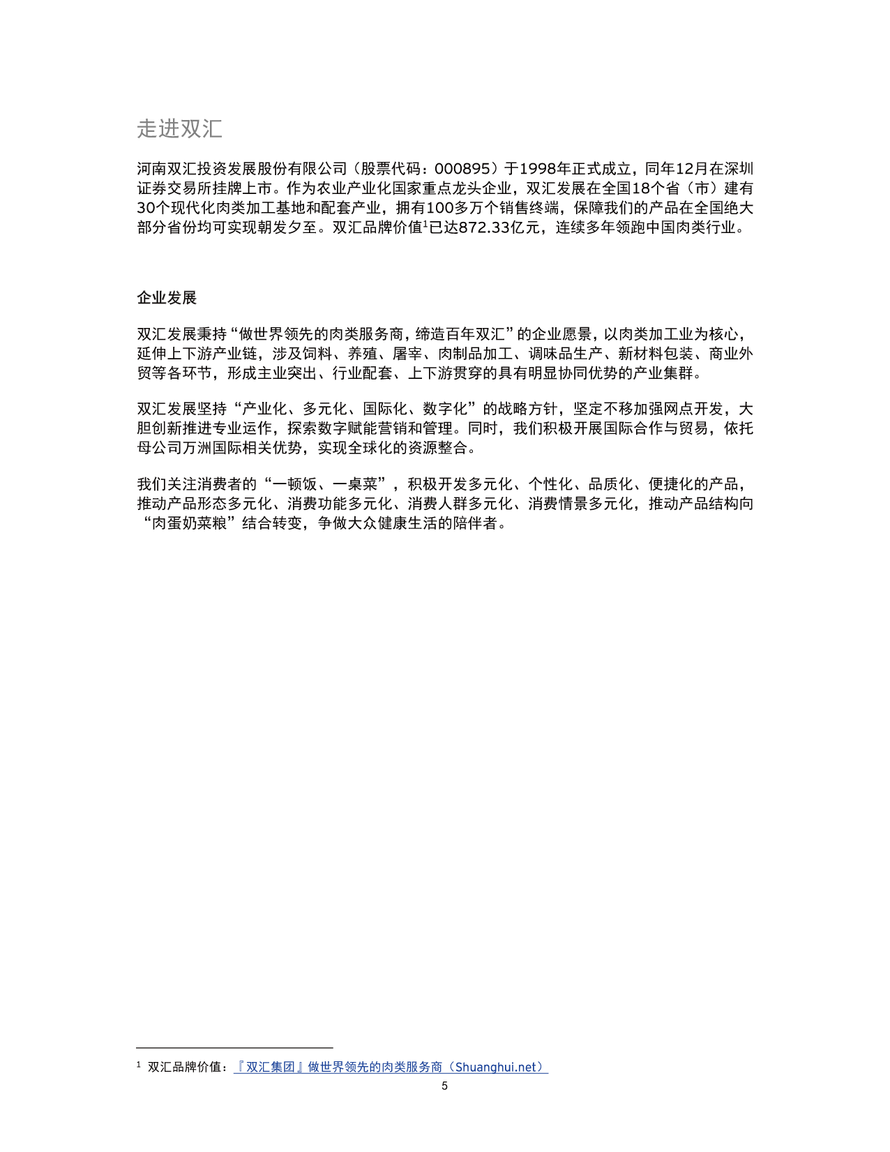 做世界领先的肉类服务商,缔造百年双汇。